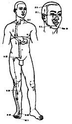 decorre dalla testa al piede, e un tragitto interno. Il tragitto esterno inizia